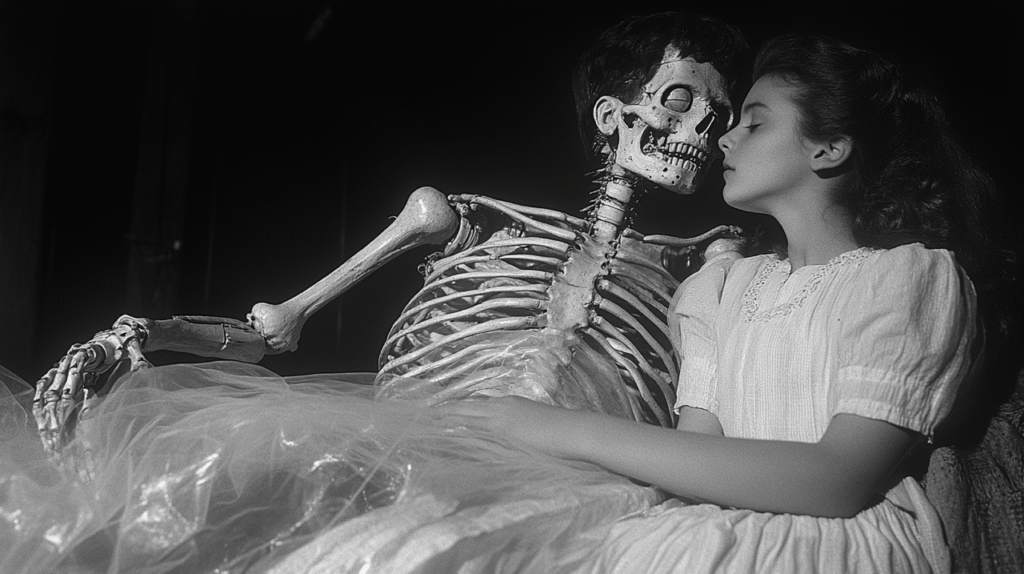 玛丽·雪莱与零号体的目光第一次相遇时,没有语言,只有令人不安的沉默。他们似乎都看穿了彼此——一边是无限可能的起点,另一边是残存但尚未燃尽的激情。