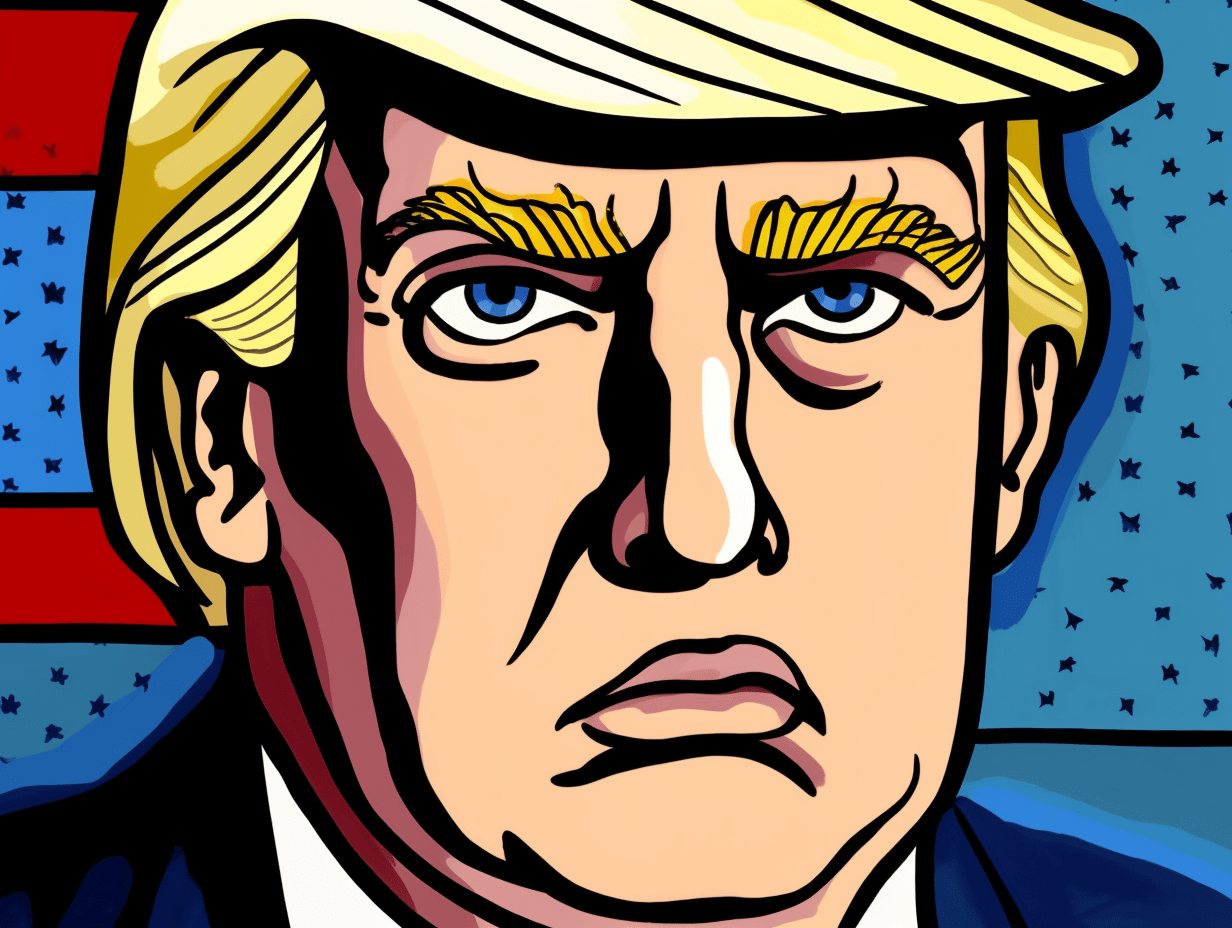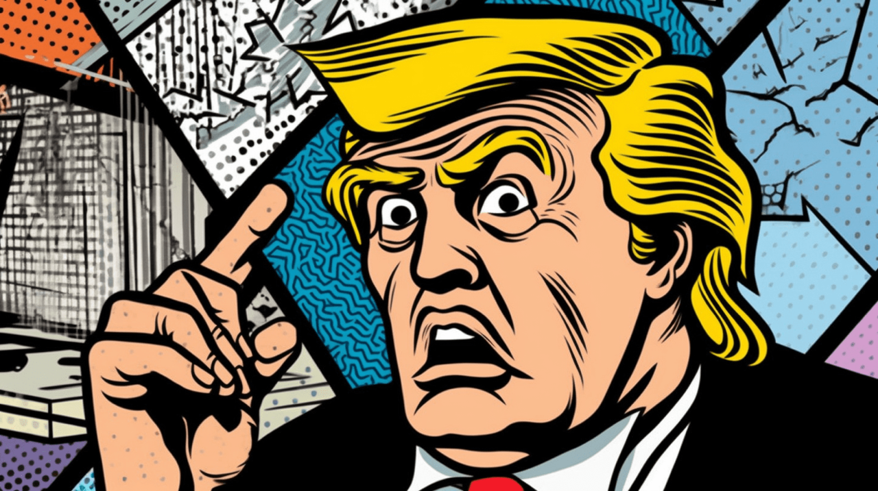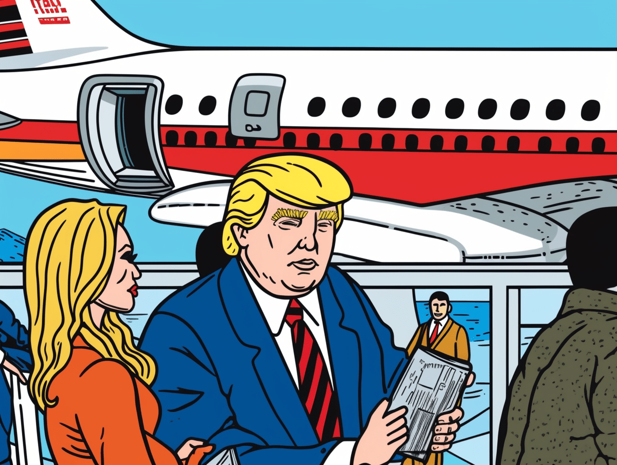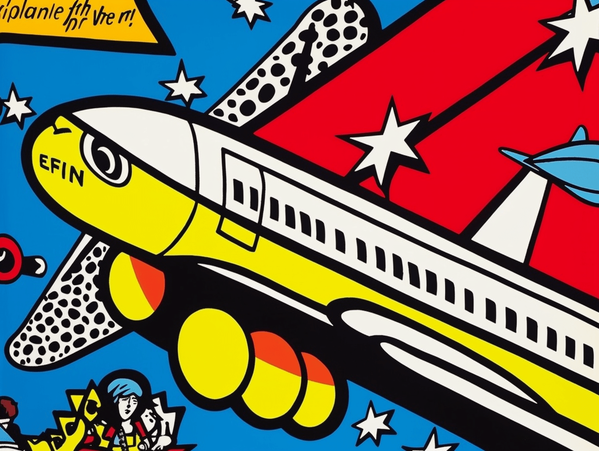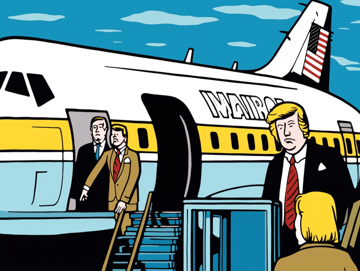 A pop-art prompt on Roy Lichtenstein’s work which simulates a piece of fake news that the Former President of the United States Donald Trump is about to board a private jet to Cuba to flee the United States as he was expected to appear in court on April 4th. to face felony charges following an investigation that spanned nearly five years.