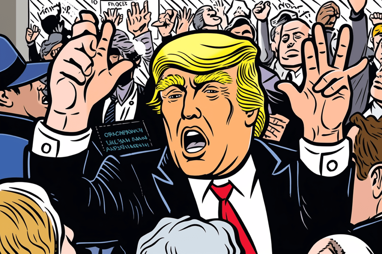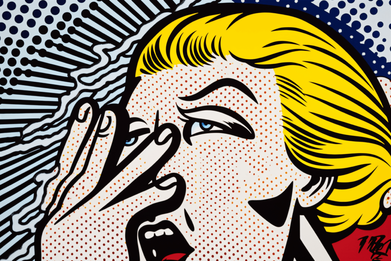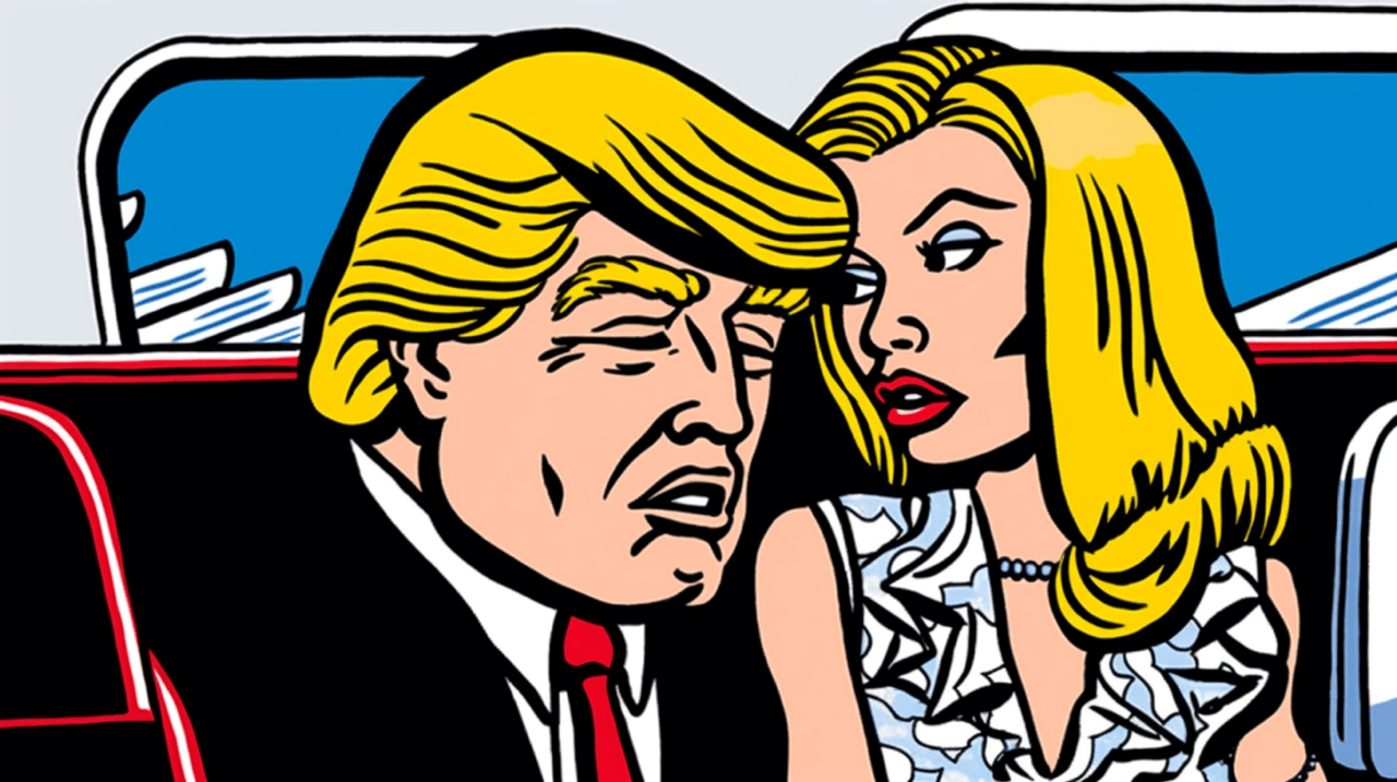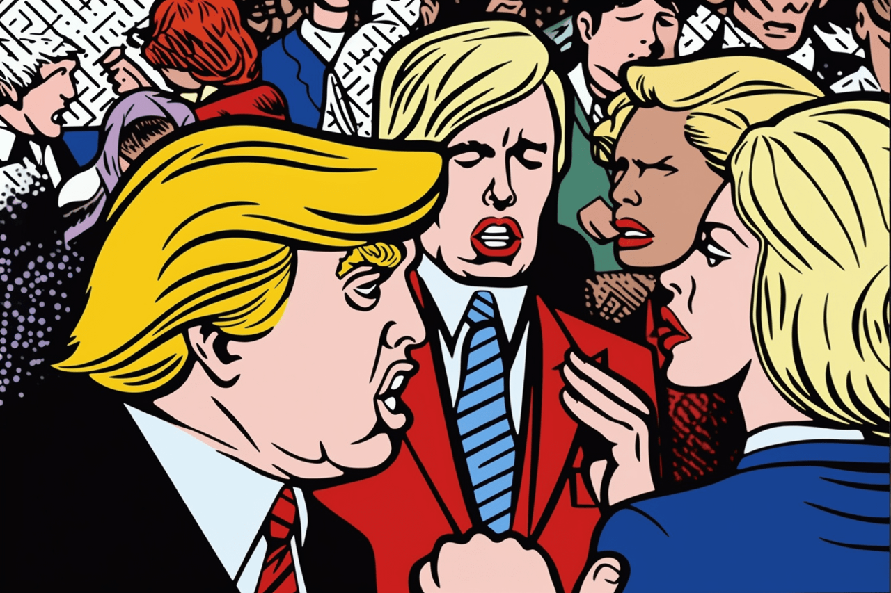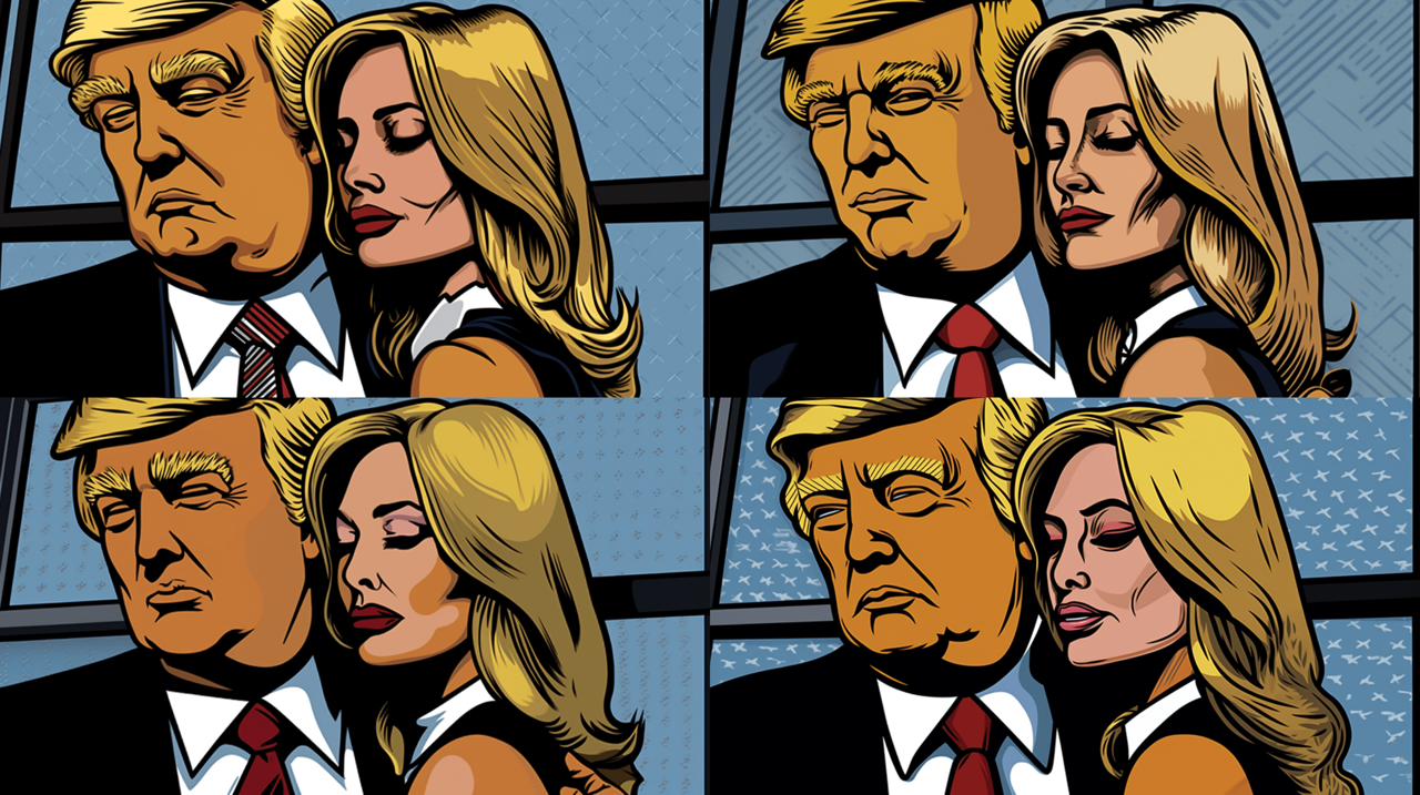 A pop-art prompt on Roy Lichtenstein’s work which simulates a piece of fake news that the Former President of the United States Donald Trump is about to board a private jet to Cuba to flee the United States as he was expected to appear in court on April 4th. to face felony charges following an investigation that spanned nearly five years.